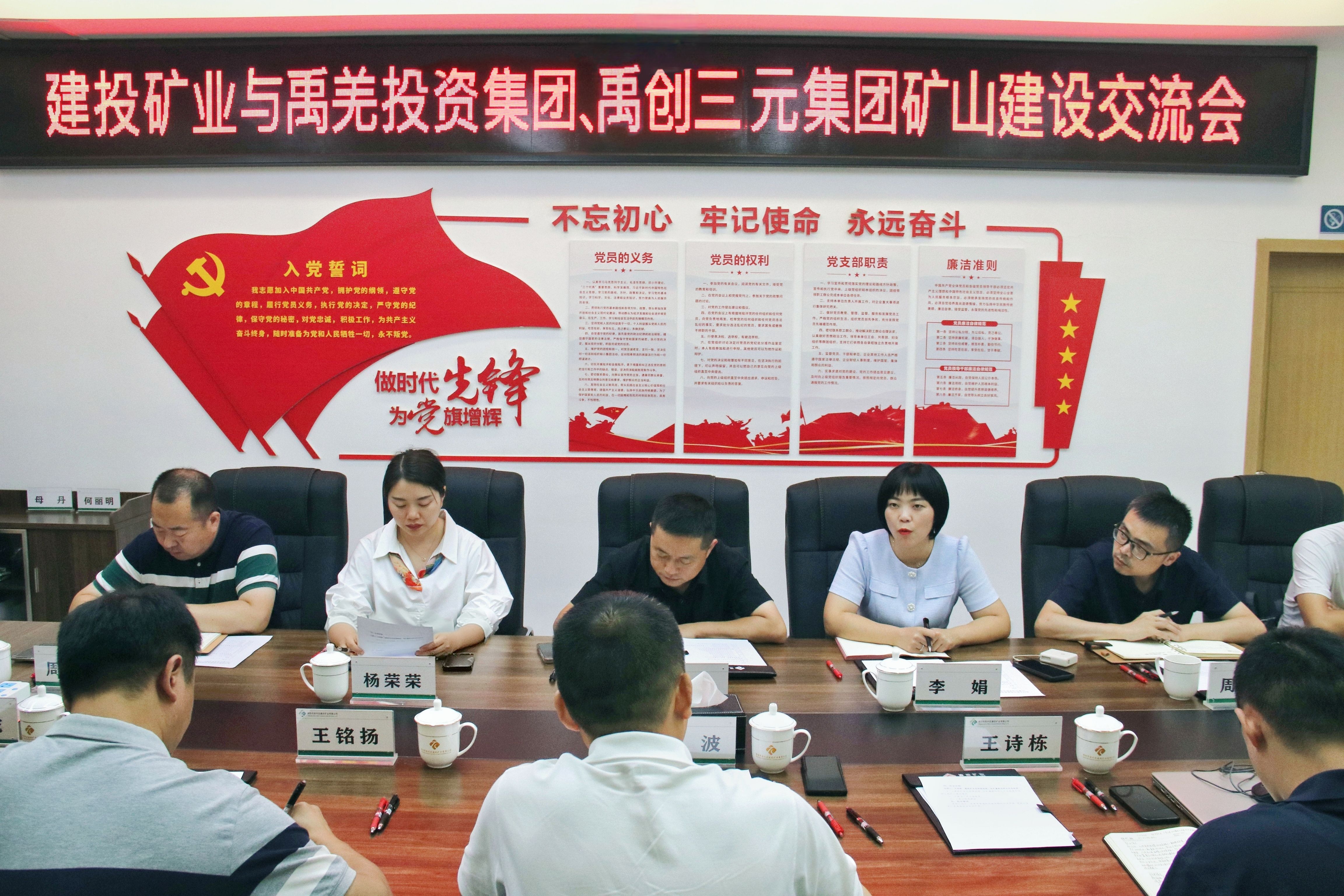 7月29日,北川禹羌投資集團(tuán)總經(jīng)理王亮、禹創(chuàng)三元集團(tuán)總經(jīng)理李娟一行到訪公司,三方圍繞礦山綠色開(kāi)發(fā)、資產(chǎn)高效運(yùn)營(yíng)、優(yōu)勢(shì)資源整合及政策資金爭(zhēng)取等領(lǐng)域進(jìn)行深入交流。公司黨支部書記、董事長(zhǎng)袁波參加座談。